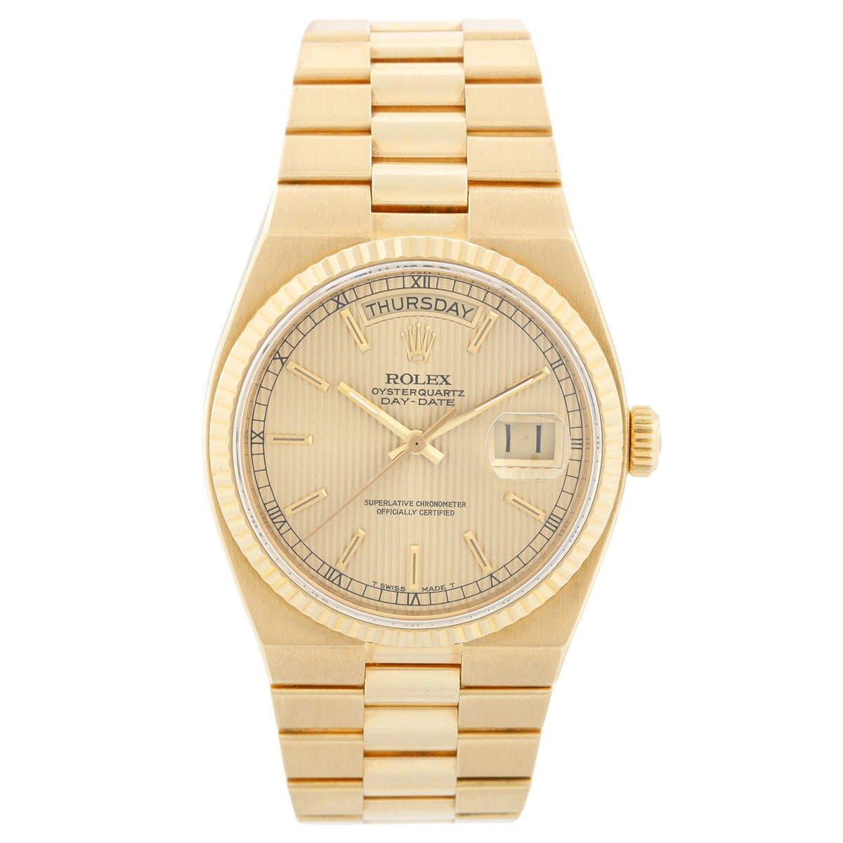Look closely and you will see the distinct variant the Rolex Oysterquartz Day-Date physically displays, not to be mistaken for its famously know older brother, the Rolex Day-Date.